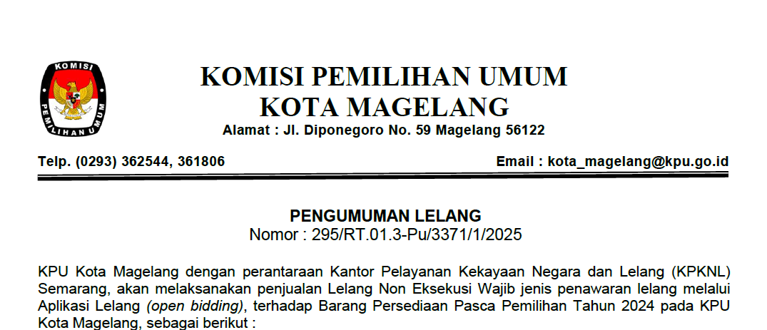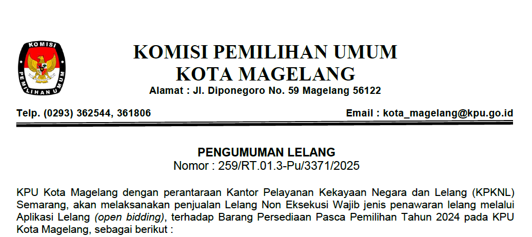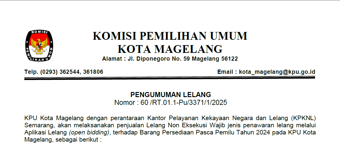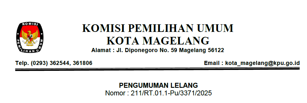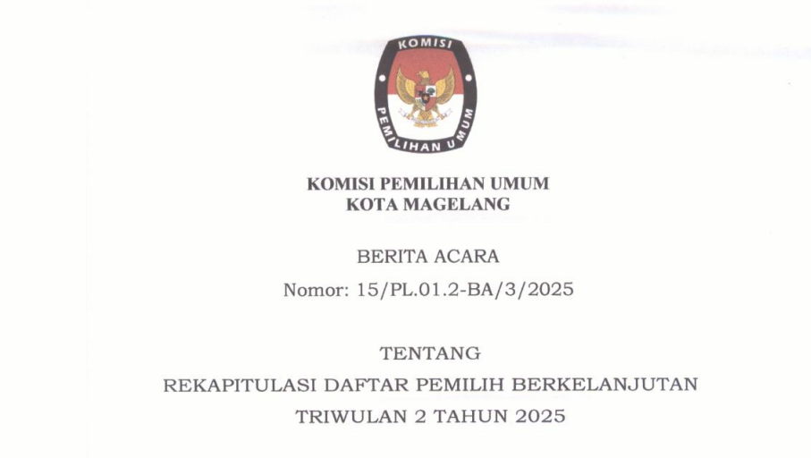 Berdasarkan Berita Acara Komisi Pemilihan Umum Kota Magelang Nomor 15/PL.01.2-BA/3/2025 tentang Rekapitulasi Daftar Pemilih Berkelanjutan Triwulan II Tahun 2025, bersama ini disampaikan