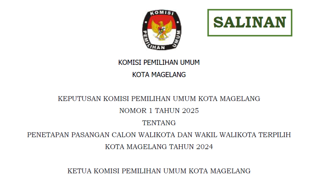 Berita Acara Rekapitulasi Komisi Pemilihan Umum Kota Magelang Nomor 15/PL.01.2-BA/3/2025, dapat diunduh disini