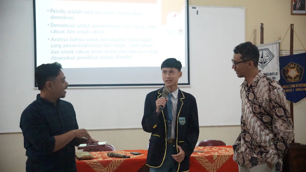 Kegiatan yang berlangsung di Aula SMA Negeri 1 Magelang tersebut berjalan dengan interaktif dan penuh antusiasme. Para siswa terlihat aktif berdiskusi serta mengajukan berbagai pertanyaan seputar proses penyelenggaraan pemilu, peran KPU, dan pentingnya hak suara dalam menentukan masa depan bangsa.