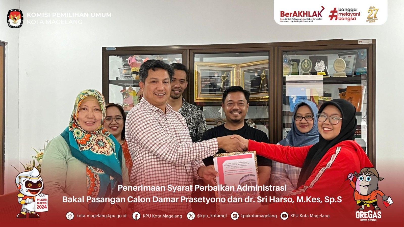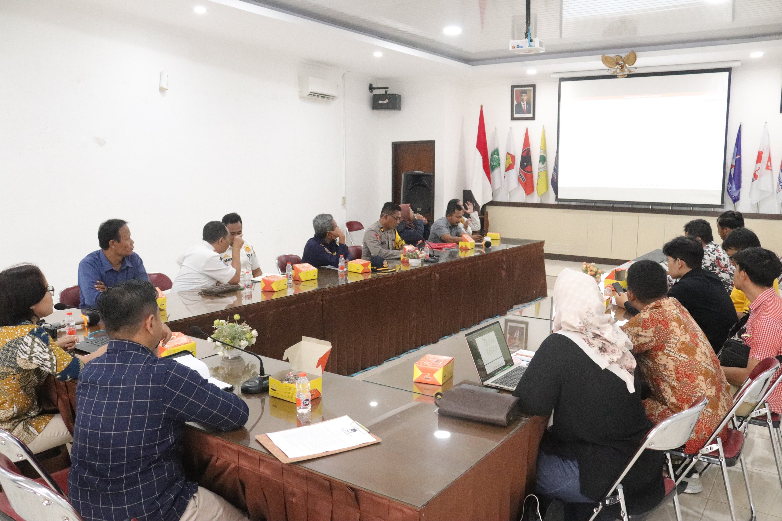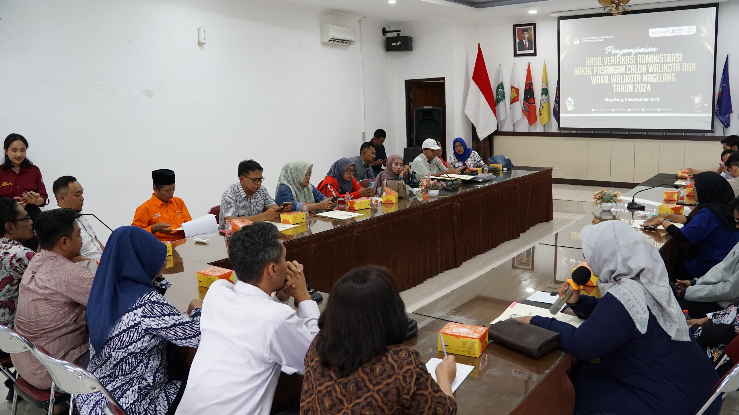 Magelang, kota-magelang.kpu.go.id- Komisi Pemilihan Umum Kota Magelang melaksanakan Rapat Koordinasi Menentukan Jadwal Kampanye Rapat Umum Pemilihan Walikota Dan Wakil Walikota Tahun 2024. Kamis, (26/9/2024), bertempat di Kantor KPU Kota Magelang. Rakor dihadiri dari LO dan Perwakilan Tim Kampanye Paslon, Polres Magelang Kota, Dandim 0705 Magelang, Dinas Perhubungan, Satpol PP, Kesbangpol serta Bawaslu Kota Magelang. Rapat ini dibuka oleh Yuda Aryunanda selaku Anggota KPU Kota Magelang Divisi Teknis Penyelenggaraan, disampaikan bahwa masa kampanye dimulai tanggal 25 September s.d 23 November 2024, kegiatan ini dilaksanakan untuk menyepakati jadwal kampanye rapat umum yang akan dilaksanakan oleh kedua paslon. Yang mana kampanye rapat umum dilaksanakan satu kali selama masa kampanye untuk masing-masing paslon. Rapat dipimpin oleh Vica Vitri Utami Anggota KPU Kota Magelang Divisi Sosdiklih Parmas dan SDM. Vica menyampaikan beberapa hal terkait yang harus disiapkan oleh paslon sebelum melaksanakan kampanye yaitu, mendaftarkan tim kampanye kepada KPU, mendaftarkan Petugas penghubung kampanye kepada KPU, serta mendaftarkan pihak lain/relawan kepada KPU dan menyampaikan desain APK dan BK yang akan difasilitasi oleh KPU. Dalam kegiatan ini disepakati untuk jadwal Rapat Umum untuk kedua paslon, yang mana Paslon nomor urut 1 dilaksanakan tanggal 23 November 2024 dan Paslon nomor urut 2 dilaksanakan tanggal 17 November 2024. Waktu pelaksanaan rapat umum mulai dari pukul 09.00 sd 16.00 mengacu pada Surat Keputusan Walikota Nomor 273/054/112 Tahun 2024. Bawaslu dan Kepolisian menghimbau kepada paslon sebelum melaksanakan kampanye harus mengajukan pemberitahuan kepada kepolisian yang ditembuskan kepada Bawaslu dan KPU, tujuh hari sebelum pelaksanaan kampanye dan tetap mematuhi aturan baik dari KPU maupun dari kepolisian terkait ketertiban berlalu lintas. Harapannya pelaksanaan Kampanye Pemilihan Walikota Dan Wakil Walikota Tahun 2024 dapat berjalan dengan lancar dan kondusif.