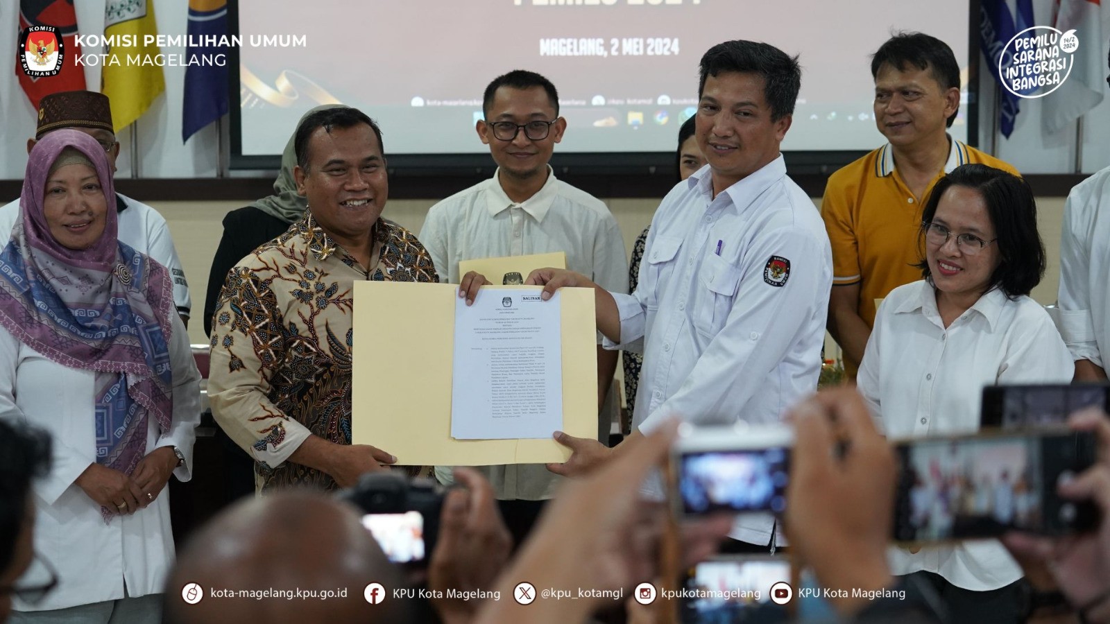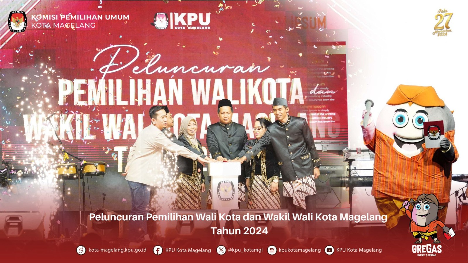 Magelang, kota-magelang.kpu.go.id- Merujuk pada Peraturan Komisi Pemilihan Umum Republik Indonesia Nomor 2 Tahun 2024 tentang Tahapan dan Jadwal Pemilihan Gubernur dan Wakil Gubernur, Bupati dan Wakil Bupati, serta Walikota dan Wakil Walikota Tahun 2024. KPU Kota Magelang melaksanakan Peluncuran Pemilihan Walikota dan Wakil Walikota Magelang Tahun 2024, (5/5/2024). Dilaksanakan di Aloon-aloon Kota Magelang dan dihadiri oleh Forpimda, KPU Prov. Jateng, KPU Kab/Kota wilayah Eks Karesidenan Kedu, Partai Politik tingkat Kota Magelang serta stakeholder terkait. Walikota Magelang Muchamad Nur Aziz, dalam sambutannya berharap pemilihan kepala daerah dapat berjalan dengan aman dan lancar. Sejalan dengan Walikota Magelang, Anggota KPU Provinsi Jawa Tengah berpesan kepada seluruh warga Jawa Tengah khususnya Kota Magelang agar berperan aktif dalam pemilihan kepala daerah dengan memilih atau ke TPS pada 27 November 2024. Kegiatan ini bertujuan untuk memperkenalkan tagline, maskot dan jingle Pemilihan Walikota dan Wakil Walikota Magelang Tahun 2024, menyebarluaskan Informasi tentang Pilkada Tahun 2024, serta Meningkatkan partisipasi masyarakat dalam Pilkada Tahun 2024. Ketua KPU Kota Magelang, Misbachul Munir menuturkan bahwa “Tagline/ slogan: Greget Lan Cerdas Maskot GreGas, Jingle Demi Kota Magelang mempunyai tujuan menyampaikan pesan dan memotivasi seluruh masyarakat Kota Magelang khususnya untuk mewujudkan PilWalkot Magelang 2024,” “Sebagai pesta demokrasi sesuai asas prinsip dan tujuan Pemilihan yang Luber Jurdil dengan bersih, berkualitas, berintegritas, bermartabat serta menyenangkan.” lanjut Munir. Harapannya kegiatan Peluncuran Pemilihan Walikota dan Wakil Walikota Magelang, dapat memberikan Sosialisasi dan Informasi tentang Kepemiluan khususnya dalam menyambut Pilkada Serentak tanggal 27 November 2024. Sosialisasi melalui cara ini juga diharapkan dapat mengajak Pemilih Pemula untuk berperan aktif dalam Proses Demokrasi.