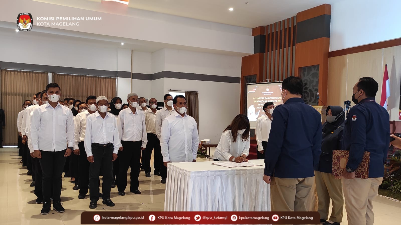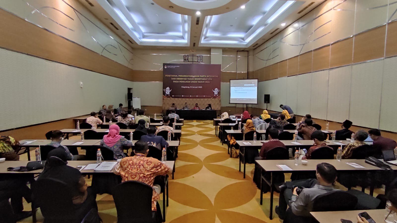 Magelang, kota-magelang.kpu.go.id. Untuk mempersiapkan pemilihan Ketua OSIS, perwakilan siswa SMP N 12 Magelang berkunjung ke KPU Kota Magelang, Selasa (25/1/2023). Kunjungan diterima Ketua KPU Kota Magelang Basmar Perianto Amron dan Anggota Divisi Sosdiklih Parmas dan SDM Ig. Bambang Sarwodiono. Guru pendamping Harlina Astuti menyampaikan harapannya agar para siswa mendapat bekal ilmu yang cukup melalui kunjungan tersebut karena sebelumnya belum pernah menyelenggarakan pemilos secara langsung. Harlina menjelaskan untuk saat ini pihaknya telah melakukan seleksi calon dan ada 5 calon yang akan maju secara perorangan. Dari kelimanya, yang nantinya mendapat suara terbanyak pertama dan kedua akan ditetapkan sebagai Ketua OSIS terpilih. Bambang Sarwodiono memaparkan tahapan pemungutan dan penghitungan suara sebagaimana yang dilaksanakan dalam pemilu. Tahapan-tahapan tersebut sebagai gambaran alur pelaksanaan yang dapat lebih disederhanakan untuk proses pemilihan ketua OSIS. Ketua OSIS SMP N 12 Surya Aditama melontarkan pertanyaan dalam diskusi tersebut. “Untuk jumlah petugas pemungutan apakah ada ketentuan?”, kata Surya. Sementara siswa lainnya, Renata bertanya bagaimana apabila terdapat pemilih yang mencoblos lebih dari satu kali di surat suara. Diskusi dilanjutnya dengan melihat Diorama TPS yang berada di area Taman Simulasi KPU Kota Magelang dan diakhiri dengan foto bersama.