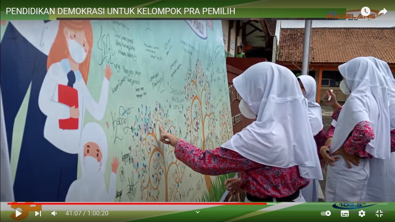 Magelang, kota-magelang.kpu.go.id. Belajarlah demokrasi secara beradab. Ketidaksepahaman selayaknya untuk disampaikan dengan adab, baik secara langsung maupun di media sosial. Demikian disampaikan Kepala Sekolah SMP N 8 Magelang Deni Kurniyawan dalam Talkshow KPU Kota Magelang bersama Radio Magelang, Rabu (16/3/2022) dengan judul Pendidikan Demokrasi untuk Kelompok Pra Pemilih. Dipandu host Ayu, Deni hadir bersama Anggota KPU Kota Magelang Sukorini Saddewi Tyastuti dan Guru Kesiswaan SMP N 8 Magelang Maulana Choirul Aziz. Sebelumnya ia mengungkapkan pembelajaran demokrasi akan lebih efektif jika dibarengi dengan hal-hal yang aplikatif, seperti pemilihan Ketua OSIS secara langsung. Deni berharap pengalaman praktik berdemokrasi tersebut turut membentuk karakter pemilih yang cerdas dan bijak. Di tengah talkshow, Deni dan Aziz berbagi pengalaman atas pelaksanaan pemilihan Ketua OSIS SMP N 8 Magelang yang belum lama ini dilaksanakan. Aziz mengungkapkan, untuk menambah antusiasme siswa, pihak kesiswaan mengemas acara semenarik mungkin. Antara lain dengan membuat pohon demokrasi sebagai media menempelkan tinta, media testimoni dan photo booth. Menutup acara, Sukorini mengimbau kepada generasi muda pra pemilih untuk terbuka belajar demokrasi. “Marilah mulai saat ini belajar menjadi pemilih yang cerdas sehingga nanti bisa memilih pemimpin yang berkualitas dan kesejahteraan masyarakat meningkat,” katanya.