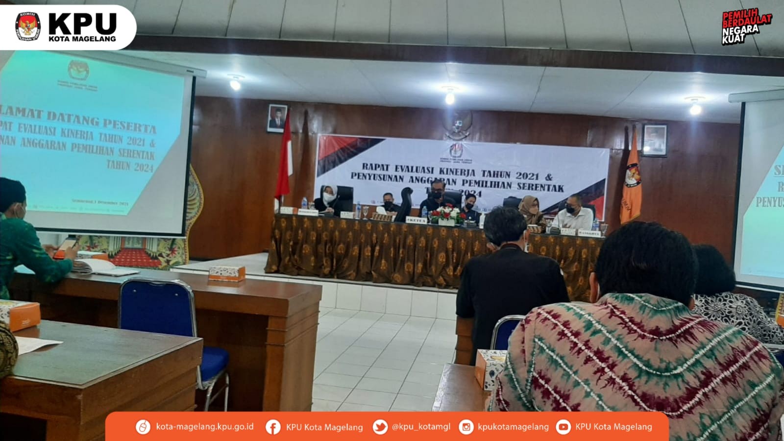 Magelang, kota-magelang.kpu.go.id. KPU Kota Magelang mengikuti Rapat Evaluasi Kinerja Tahun 2021 dan Penyusunan Anggaran Pemilihan Serentak Tahun 2024 yang diselenggarakan KPU Provinsi Jawa Tengah pada Rabu (1/12/2021). Kegiatan yang dihadiri 35 KPU Kabupaten/Kota se Jawa Tengah ini bertujuan untuk kesetaraan dalam penganggaran serta upaya KPU Provinsi agar pelaksanaan pemilihan serentak 2024 ada dalam sebuah rentang kendali dan monitoring terkait anggaran. Hal tersebut disampaikan Ketua KPU Provinsi Jawa Tengah Yulianto Sudrajat dalam sambutannya. Evaluasi kinerja dipandu Sekretaris KPU Provinsi Jawa Tengah Sri Lestariningsih. Ia mengatakan agar seluruh satker melakukan evaluasi kinerja sebelum ada evaluasi di tingkat provinsi. Selanjutnya, rapat koordinasi penyusunan anggaran pemilihan serentak tahun 2024 dipandu Anggota KPU Provinsi Jawa Tengah Divisi Perencanaan Ikhwanudin. Sesi ini membahas struktur, sinkronisasi dan standarisasi kegiatan KPU Provinsi dan KPU Kabupaten/Kota. Seluruh satker diminta segera menindaklanjuti hasil rapat koordinasi dan berkomunikasi dengan TAPD dimasing-masing kabupaten/kota. Mewakili KPU Kota Magelang, hadir Basmar Perianto Amron selaku Ketua KPU Kota Magelang, Purwanti Juli Wardani, sebagai Divisi Perencanaan Data dan Informasi, dan M. Rifqi Leandro selaku Kasubbag Program dan Data.