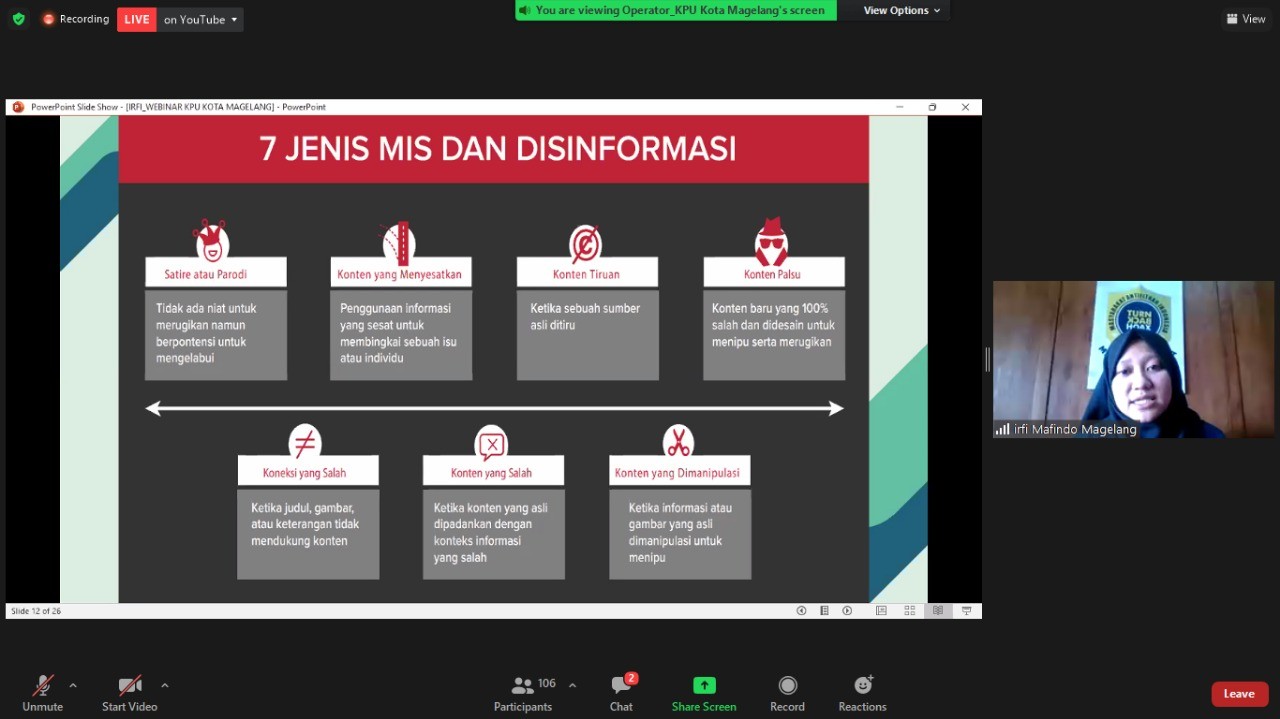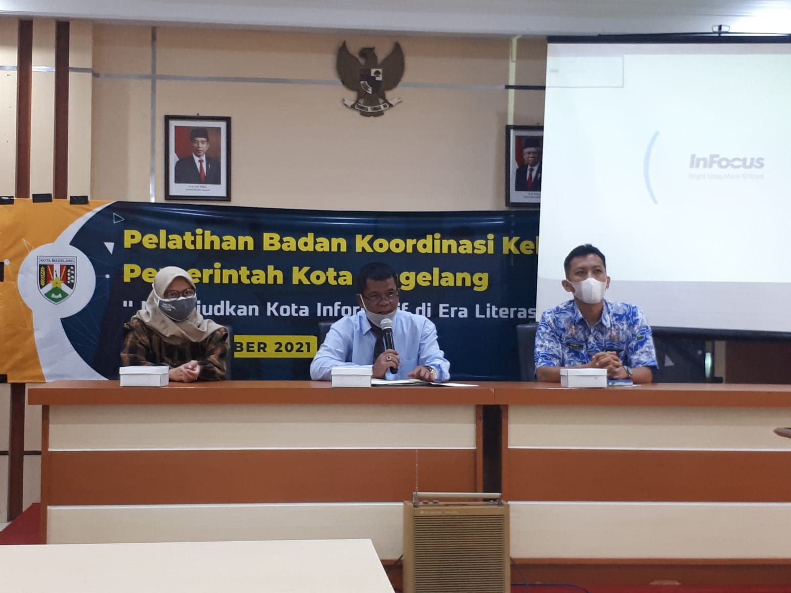Magelang, kota-magelang.kpu.go.id. Demi optimalisasi tugas dan fungsi Badan Koordinasi Kehumasan (Bakohumas) di Kota Magelang, jajaran OPD, instansi vertikal dan BUMD mengikuti pelatihan yang digelar Dinas Komunikasi, Informatika, dan Statistik (Diskominsta) pada Rabu (10/11/2021). PPID KPU Kota Magelang turut menjadi peserta acara yang mengangkat tema “Mewujudkan Kota Informatif di Era Literasi Digital” dan menghadirkan narasumber dari akademisi, praktisi fotografi, serta komisi informasi. Dosen Fisipol Universitas Tidar Ascharisa Mettasatya Afrilia memaparkan bagaimana kebutuhan transformasi humas sebagai penyedia informasi yang adaptif di era digital dan tips penulisan pers release yang efektif. Sementara praktisi fotografi profesional Mukhamad Faies berbagi pengalaman dan ilmu dalam pengambilan objek foto yang menarik dan memiliki nilai berita. Adapun Komisoner Komisi Informasi Provinsi Jawa Tengah Ermi Ardhyanti menjelaskan peran PPID dalam penyampaian informasi publik, serta jenis informasi yang seharusnya dipublikasikan oleh badan publik. Dalam penuturannya, Ermy menyoroti sejumlah informasi yang dikecualikan oleh badan publik sesuai ketentuan peraturan perundang-undangan yang ada. Kegiatan ini berlangsung sejak pukul 08.00 sampai dengan 12.00 WIB dan dibuka oleh Kepala Diskominsta Kota Magelang Suryantoro.