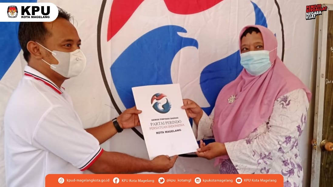 Magelang, kota-magelang.kpu.go.id. Dalam upaya meningkatkan kuantitas dan kualitas koordinasi ke partai politik di Kota Magelang, KPU Kota Magelang melanjutkan agenda kunjungan parpol ke DPC Partai Hati Nurani Rakyat (Hanura) Kota Magelang, Selasa (15/6/2021). Ketua KPU Kota Magelang Basmar Perianto Amron menyampaikan harapannya agar parpol dapat sedini mungkin melakukan persiapan untuk penyelenggaraan pemilu dan pemilihan serentak di tahun 2024 “Persyaratan-persyaratan pendukung dari peserta pemilu di wilayah kota Magelang harus tersedia untuk disandingkan dengan data-data yang berasal dari pusat, seperti kepengurusan dan kesekretariatan tingkat kota dan kecamatan serta data keanggotaan,” jelas Basmar. Ia menambahkan informasi terkait putusan MK dalam hal mekanisme verifikasi untuk peserta pemilu 2024, waktu pelaksanaan pemungutan suara serta rentang waktu dimulainya tahapan awal dihitung mundur dari hari pemungutan suara. Menyambut Ketua DPC Partai Hanura Kota Magelang Tyas Anggraeni memberikan apresiasi atas kehadiran KPU Kota Magelang. “Kegiatan semacam ini pastinya akan memberikan dampak perbaikan pemilu dan pemilihan di Kota Magelang agar semakin baik dan berkualitas,” ujarnya. Di akhir kunjungan, didampingi sekretaris HIR Jatmiko dan bendahara Wahyu Wijayanto, Tyas Anggraeni menyampaikan SK Kepengurusan DPC Partai Hanura Kota Magelang terbaru kepada Ketua KPU Kota Magelang.