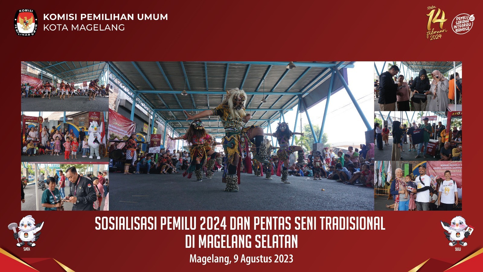 Magelang, kota-magelang.kpu.go.id. Tim kirab KPU Kota Magelang melaksanakan sosialisasi di Pasar Rejowinangun dan Pasar Gotong Royong pada Jumat pagi (11/8/2023). Sosialisasi dilakukan dengan memberikan informasi pelaksanaan pemilu 2024, ajakan untuk menggunakan hak pilih dan memberikan bahan sosialisasi berupa flyer. Tim kirab sesekali melontarkan pertanyaan dan disambut antusias oleh para pedagang. Hadiah souvenir diberikan kepada pedagang yang dapat menjawab pertanyaan. Sosialisasi juga dilakukan dengan penyampaian informasi pemilu 2024 melalui pengeras suara yang tekoneksi dengan lokasi-lokasi strategis di sudut pasar. Tim kirab menyampaikan informasi tentang hari, tanggal pemungutan suara, ajakan datang ke TPS 14 Februari 2024 dan pengecekan DPT online. Pedagang dan pengunjung pasar juga diajak untuk mendekat tim kirab bersama maskot untuk mendapat informasi seputar pemilu dan souvenir bahan sosialisasi. Pada Jumat sore, sosialisasi dilaksanakan dengan media pertunjukan musik tradisional angklung yang mengambil lokasi di sisi barat alun-alun magelang, depan bangunan water toren atau menara air yang merupakan salah satu icon bersejarah di Kota Magelang. Alunan musik angklung yang menyuguhkan lagu-lagu kekinian dan keberadaan Sura Sulu menarik perhatian masyarakat yang berada di area alun-alun untuk mendekat. Di sela-sela pertunjukan angklung, komisioner KPU Kota Magelang memberikan kuis kepada penonton yang mendekat dan diberikan souvenir pemilu. Tim kirab juga memberikan layanan cek DPT online kepada masyarakat sembari diberikan informasi tentang pelaksanaan pemilu serta partai politik peserta pemilu 2024. Sebagian tim kirab menyisir sudut lain alun-alun dan area bangunan sekitarnya (klenteng, gereja, pusat pertokoan, kuliner, pedagang kaki lima, tukang parkir) untuk menyebarkan bahan sosialisasi.
