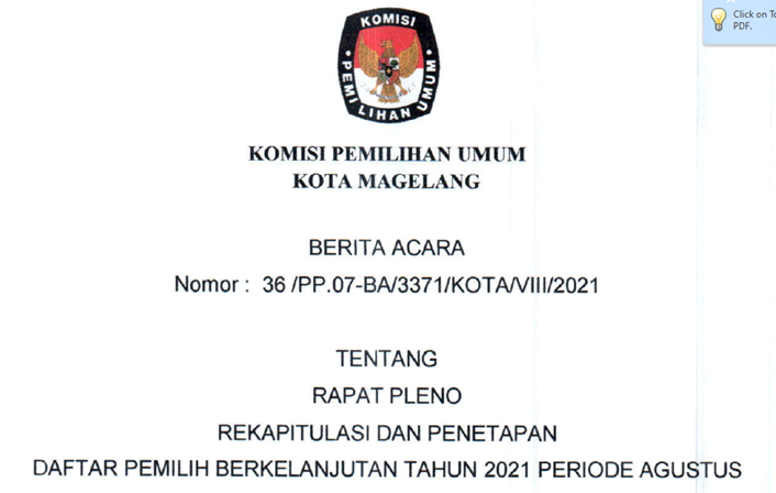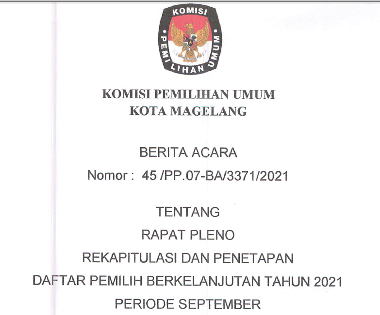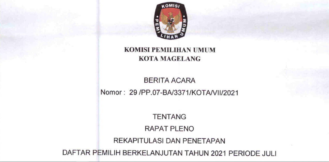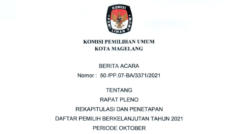 SELENGKAPNYA KLIK Berita Acara Nomor: 50/PP.07-BA/3371/2021 tentang Rapat Pleno Rekapitulasi dan Penetapan Daftar Pemilih Berkelanjutan Tahun 2021 Periode Oktober