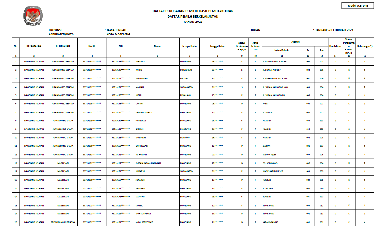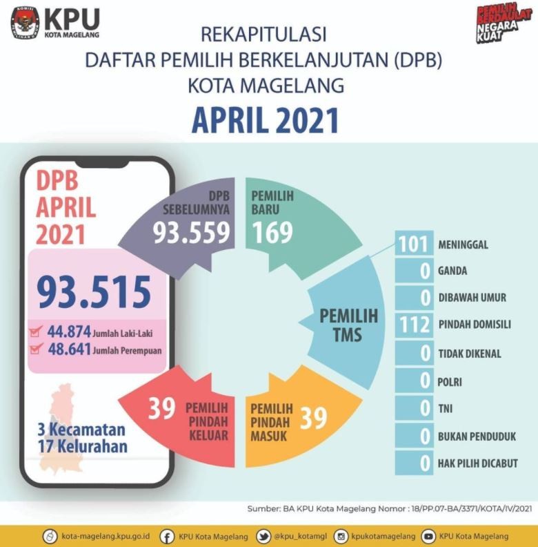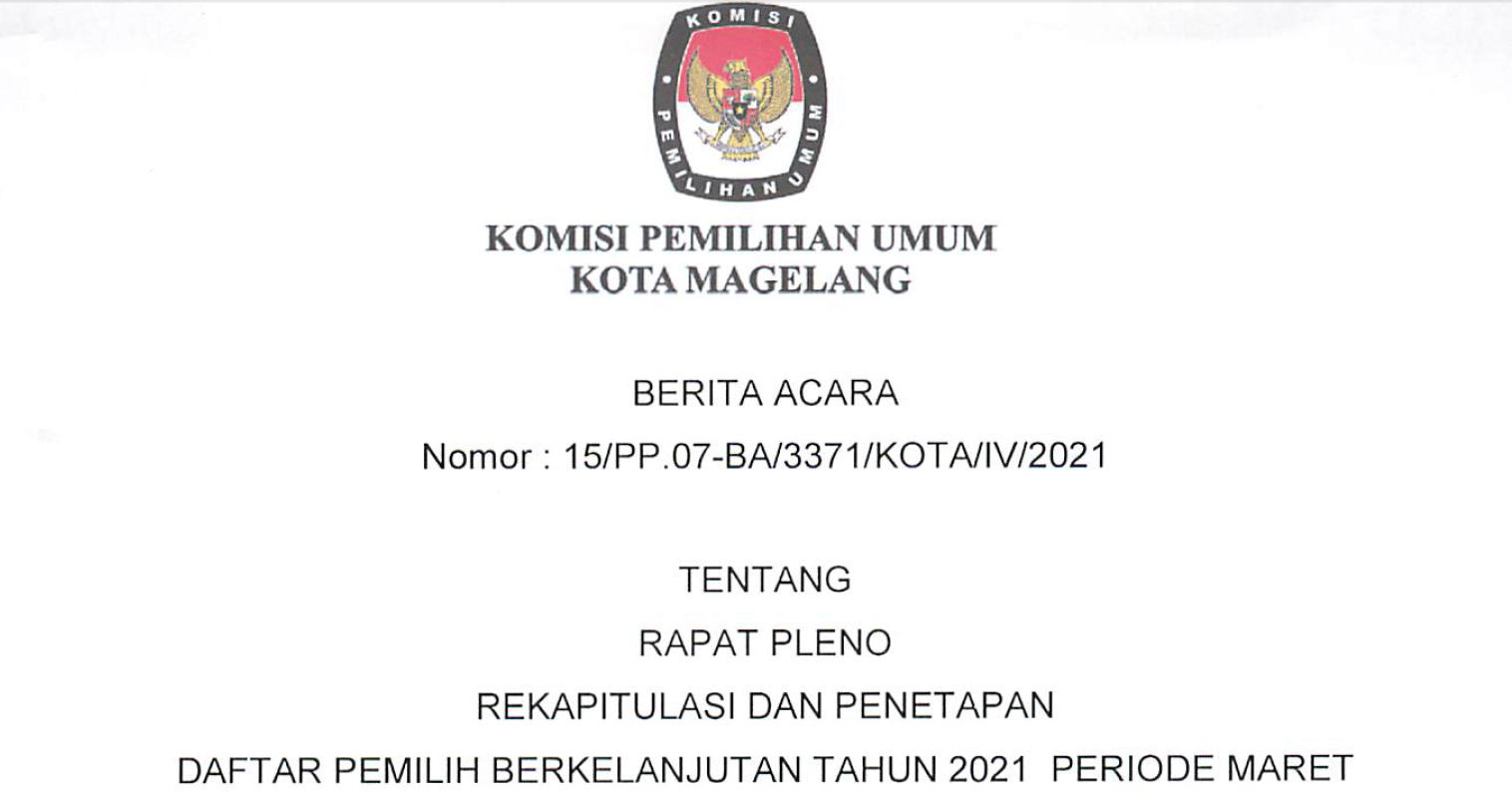 Magelang, kota-magelang.kpu.go.id. KPU Kota Magelang telah menetapkan Daftar Pemilih Berkelanjutan (DPB) periode bulan April sebanyak 93.515 pemilih. Adapun Berita Acara Rekapitulasi dan Penetapan Daftar Pemilih Berkelanjutan periode bulan April dapat didownload melalui link berikut ini.