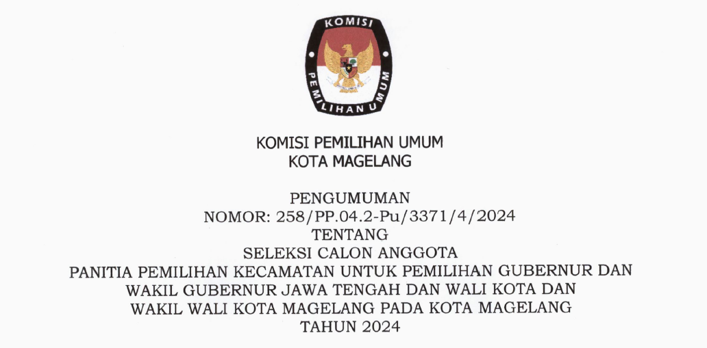 Seleksi Calon Anggota PPK Untuk Pemilihan Gubernur Dan Wakil Gubernur Jawa Tengah Dan Wali Kota Dan Wakil Wali Kota Magelang Pada Kota Magelang Tahun 2024, Klik Disini